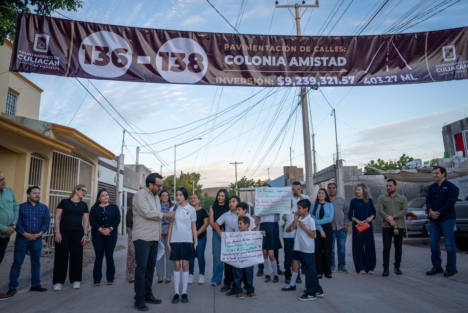 Culiacán, Sinaloa.– La colonia Amistad dio un paso importante en su infraestructura vial con la inauguración de tres nuevas calles pavimentadas, obra encabezada por el presidente municipal Juan de Dios Gámez Mendívil, quien reiteró que la cercanía con la ciudadanía es clave para avanzar con mayor rapidez en la mejora de los distintos sectores de Culiacán.