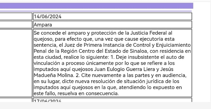 El juez federal amparó con esta resolución a Jesús Madueña y a Juan Eulogio Guerra.