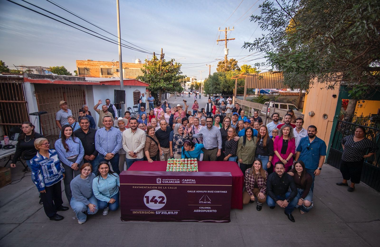 En la colonia Aeropuerto se hizo entrega de la pavimentación de la calle Adolfo Ruiz Cortínez, obra en la que se invirtieron 3.2 millones de pesos, beneficiando directamente a los habitantes de este sector y mejorando una vialidad clave para el tránsito local.