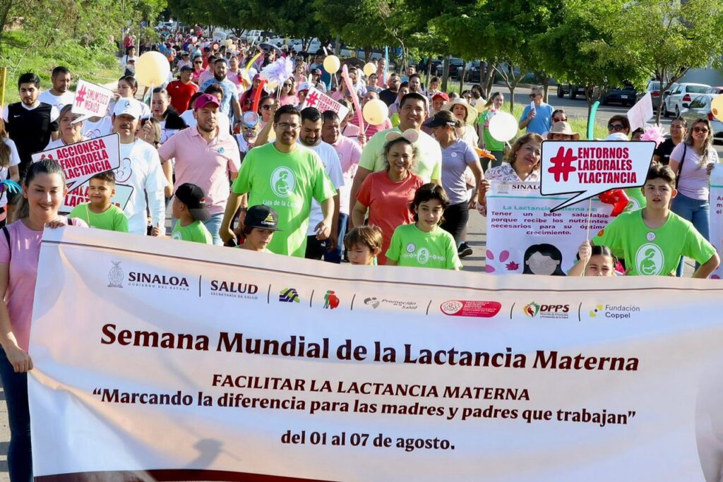 Culiacán, Sinaloa.- En conmemoración a la Semana Mundial de la Lactancia Materna, y para facilitar la realización de esta actividad, la Secretaría de Salud y los Servicios de Salud de Sinaloa llevaron a cabo una exitosa caminata partiendo de las instalaciones de la Unidad de Gobierno, “Marcando la diferencia para madres y padres que trabajan”.