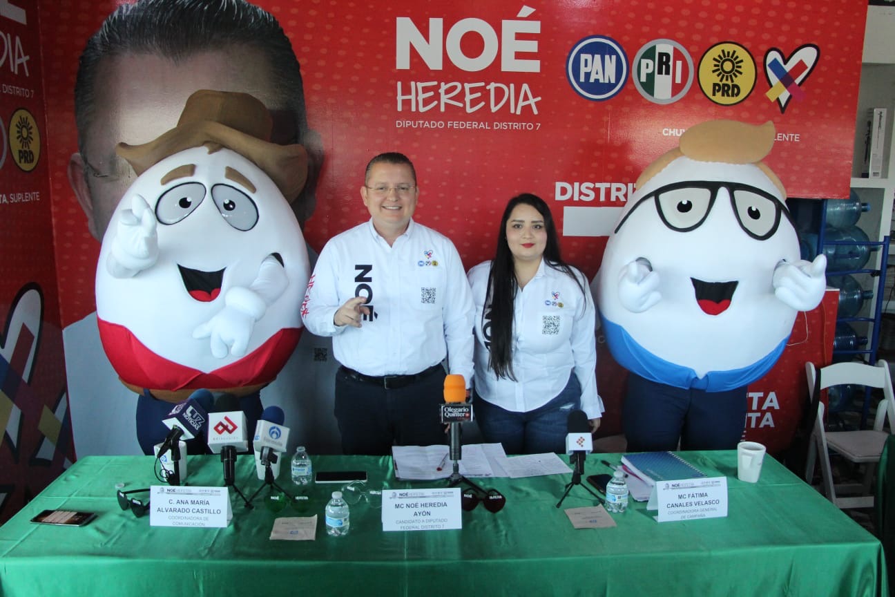 Aclaró Noé Heredia: desde joven fui diputado local, regidor y funcionario público, jamás hice diferencia alguna para atender y brindar beneficio a la gente, sin importar si fueran amarillos, rojos, azules o naranjas, pues comprendo que nuestra tarea es servir sin distingo, como quiero servir a habitantes del séptimo distrito.