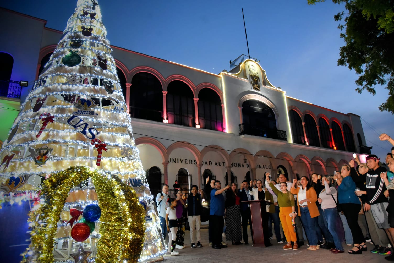 Con un mensaje de fraternidad y sororidad impregnado del humanismo y solidaridad que la caracteriza la Universidad Autónoma de Sinaloa (UAS) llevó a cabo su tradicional Encendido del Árbol en sus cuatro unidades regionales Centro, Centro Norte, Norte y Sur de manera simultánea.