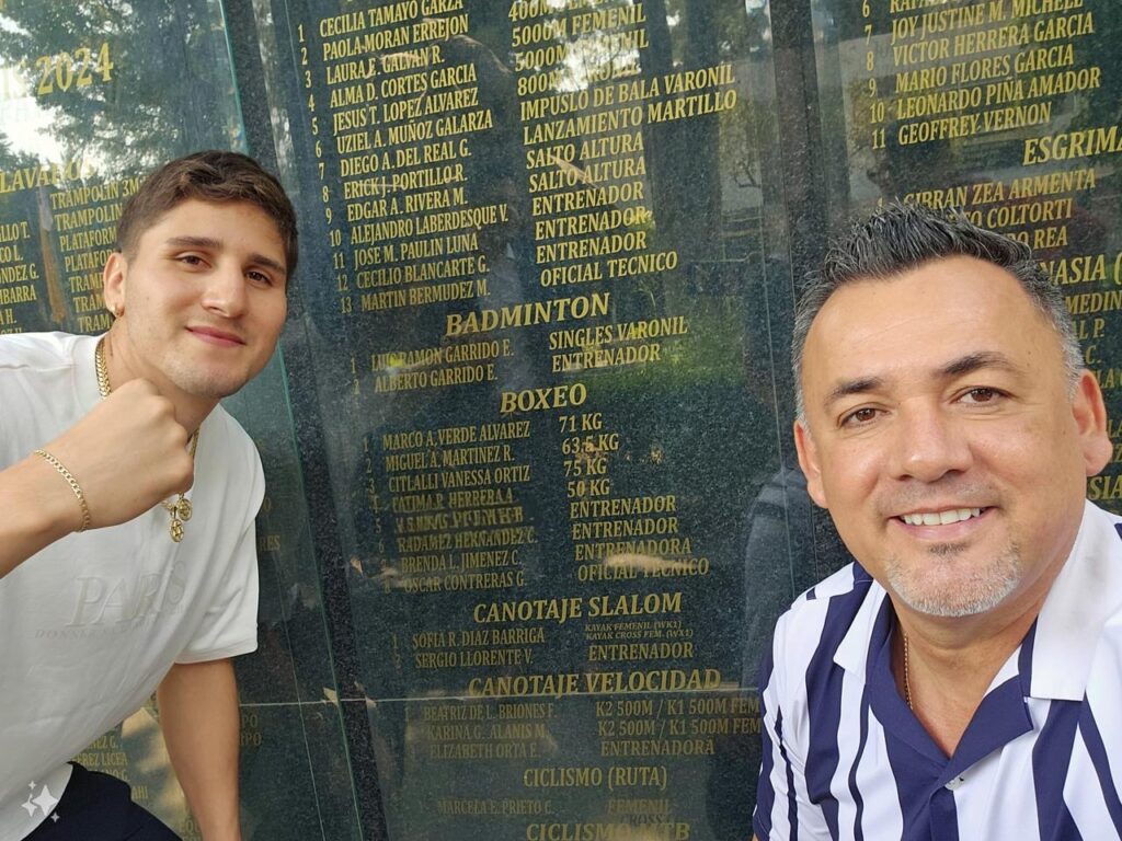 El entrenador de boxeo de la UAS, junto a su pupilo y estudiante universitario Marco Alonso Verde Álvarez, regresó al Comité Olímpico Mexicano para recibir un incentivo económico y ver plasmados sus nombres en el tradicional muro de medallistas olímpicos.