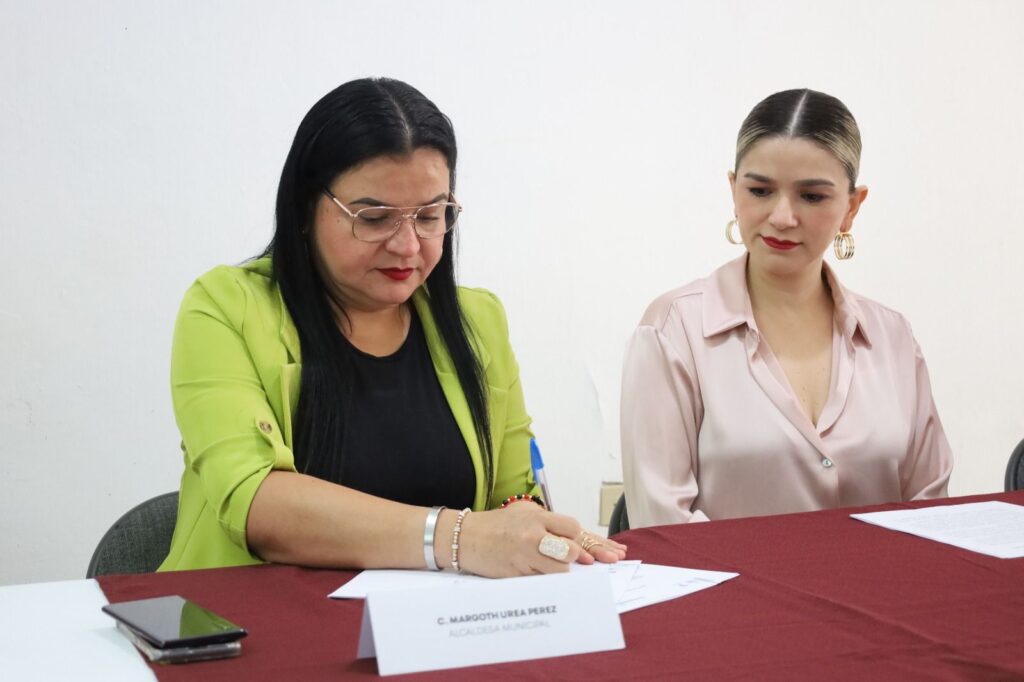 Navolato, Sinaloa.- Este jueves el H. Ayuntamiento de Navolato que preside la Alcaldesa Margoth Urrea Pérez, llevó a cabo una firma de convenio con Encauza I.A.P., a través de la directora Yajaira Camacho Rodríguez, con la finalidad de impulsar acciones para el diagnóstico, atención oportuna, tratamiento y recuperación en pacientes con cáncer de mama, cervicouterino y próstata.