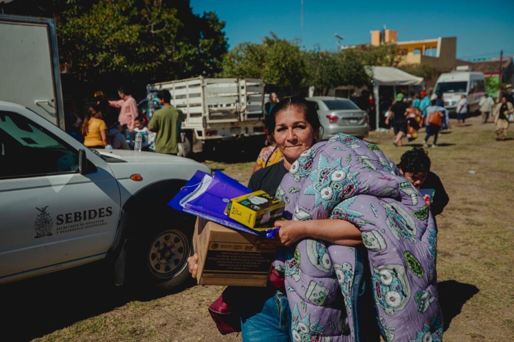 En representación de la doctora Eneyda Rocha Ruiz, la directora de DIF Sinaloa, Lic. Mercedes Ibarra hizo entrega de apoyos acompañada de la presidenta del municipio de Rosario, Claudia Liliana Valdez Aguilar, la presidenta de DIF municipal, Adela del Carmen Aguilar Astorga y la directora, Karla Mariel Peraza Hernández.