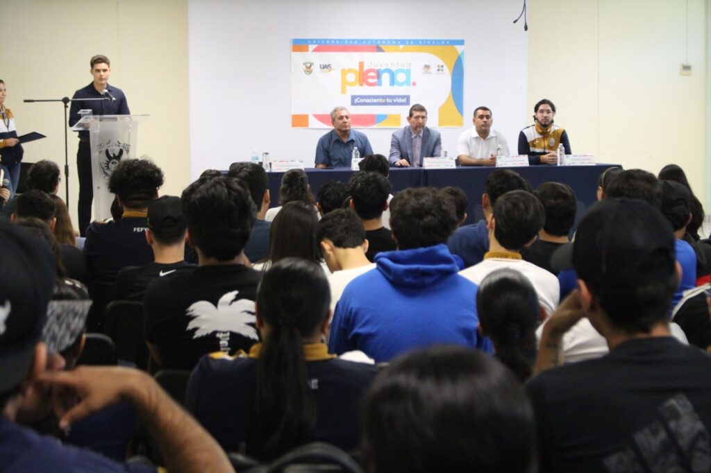 Juventud Plena llegó a los estudiantes de la Facultad de Educación Física y Deporte (FEFyDE) de la Universidad Autónoma de Sinaloa (UAS), programa que coordina la Dirección General de Comunicación Social (DGCS) y la Unidad de Bienestar Universitario (UBU), con actividades de joven a joven centradas en sus cinco ejes principales: nutrición, psicología, cultura, deporte y educación financiera.