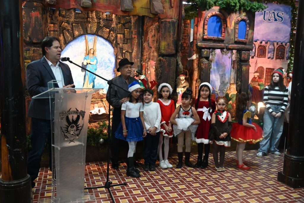 A nombre del Rector, doctor Jesús Madueña Molina, el evento fue inaugurado por el director general de Extensión de la Cultura, maestro Homar Medina Barreda quien expresó que “este nacimiento representa el llamado a los nuevos deseos de paz, de renovación de todos los sentimientos que se aproximan en estas fechas y una sensación de felicidad para todos nosotros y más para nuestros niños”.
