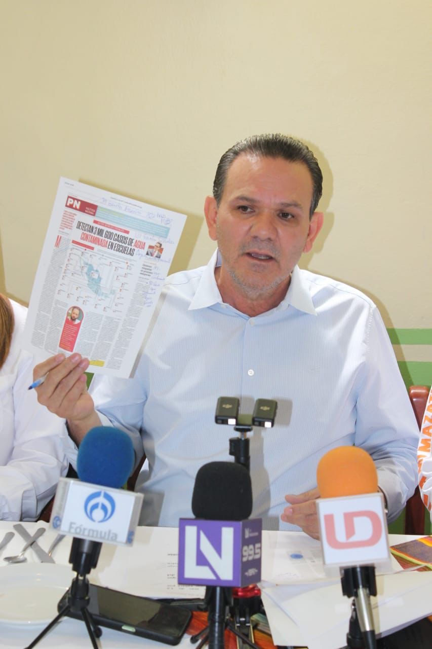 En conferencia de prensa, Sergio Torres expuso una nota nacional sobre una investigación en el que señalan 3600 escuelas con agua contaminada con Arsenio y heces fecales, de las cuales 121 escuelas están en Sinaloa, por lo que exhortó a la Secretaría de Educación a que informe sobre el problema y cuáles son esas escuelas para atender el problema ya que lo calificó como grave.