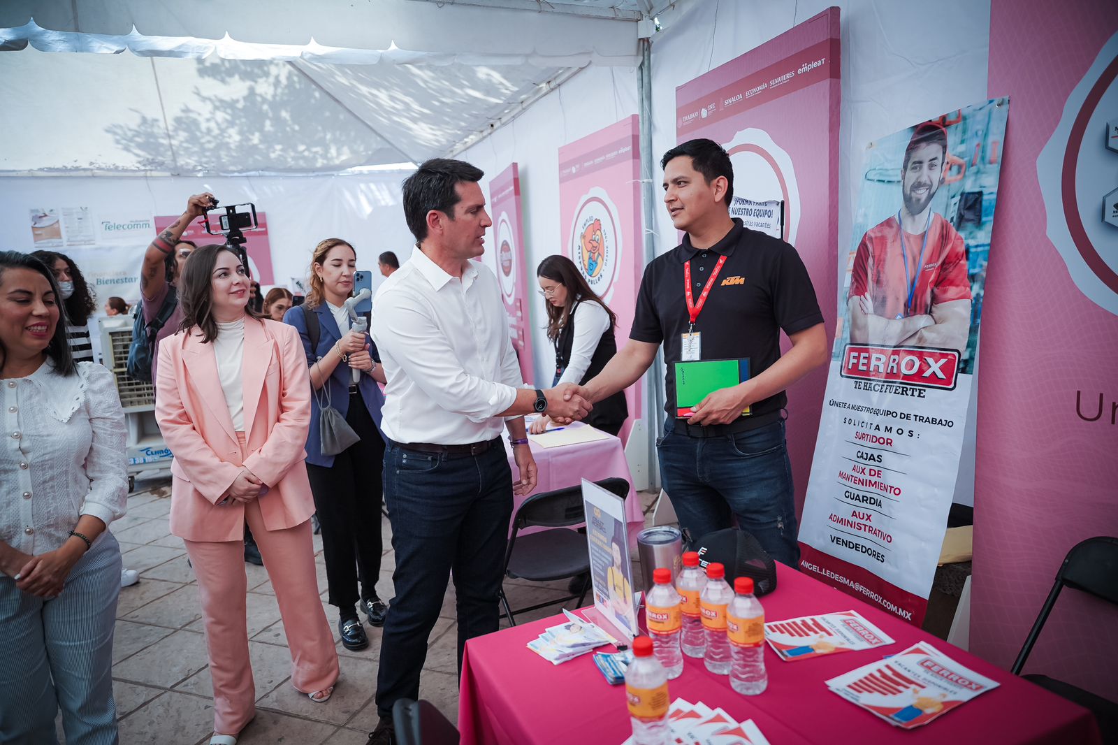 En esta Feria de Empleo para las Mujeres participaron el Secretario del Ayuntamiento de Culiacán, José Ernesto Peñuelas Castellanos, en representación del Alcalde, Juan de Dios Gámez Mendívil; la Directora del Servicio Nacional del Empleo en Sinaloa, Abril Vega Araiza; la Directora del Registro Civil, Margarita Villaescusa Rojo; el Director del Infonavit, Adolfo Verdugo y representantes de empresas.