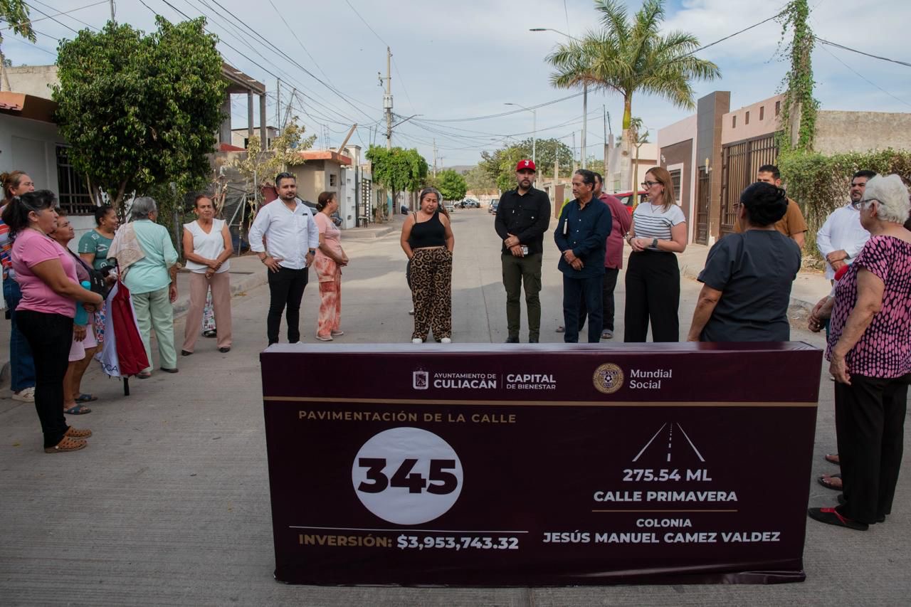 Asimismo, en la colonia Jesús Manuel Camez Valdez se entregó la calle Primavera, con una extensión de 275.54 metros lineales y una inversión de 3 millones 953 mil 743 pesos.