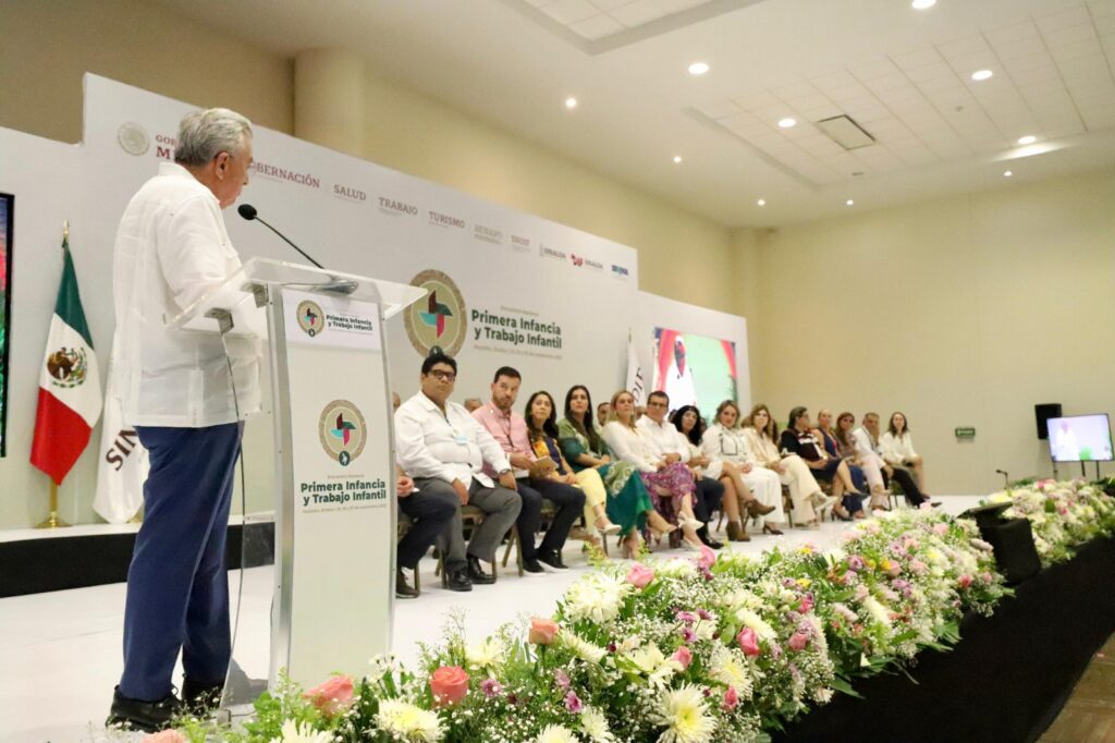 Mazatlán, Sinaloa.- El gobernador Rubén Rocha Moya inauguró en el puerto de Mazatlán el Encuentro Nacional Primera Infancia y Trabajo Infantil, el cual tiene como propósito propiciar un espacio de diálogo e intercambio de experiencias en materia de atención a la Primera Infancia y de la problemática del Trabajo Infantil, en tres sectores: jornaleros, industria de maquiladoras y sector turístico, además de la promoción de alternativas de atención integral en favor de los niños y las niñas.