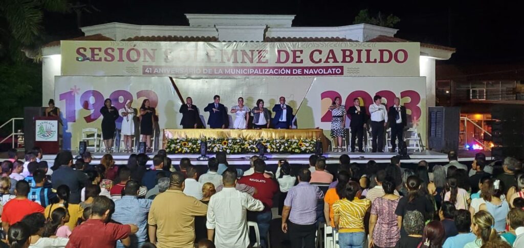 El H. Ayuntamiento de Navolato que preside la Alcaldesa Margoth Urrea Pérez, llevó a cabo en el Teatro del Pueblo una sesión solemne de Cabildo por el 41 Aniversario de la Municipalización de Navolato, a donde asistieron navolatenses de la cabecera municipal y de las siete sindicaturas.