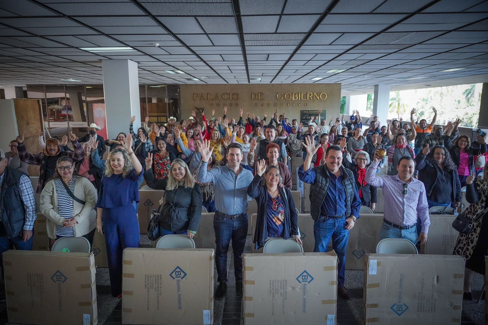 • La Secretaría de Economía del Gobierno de Sinaloa entregó 100 equipamientos básicos de carpas, mesas, sillas y caja de seguridad a artesanos de todo el Estado.