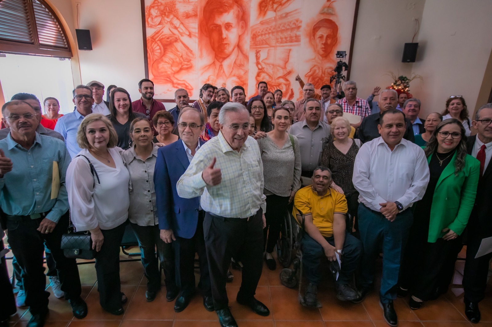 Culiacán, Sinaloa.- El gobernador Rubén Rocha Moya, acompañado por el director General de COBAES Santiago Inzunza Cázarez hizo entrega de 46 gratificaciones por jubilación para el personal de esta institución quienes dedicaron décadas de servicio en pro a la juventud, la educación y un mejor desarrollo para el futuro del estado.