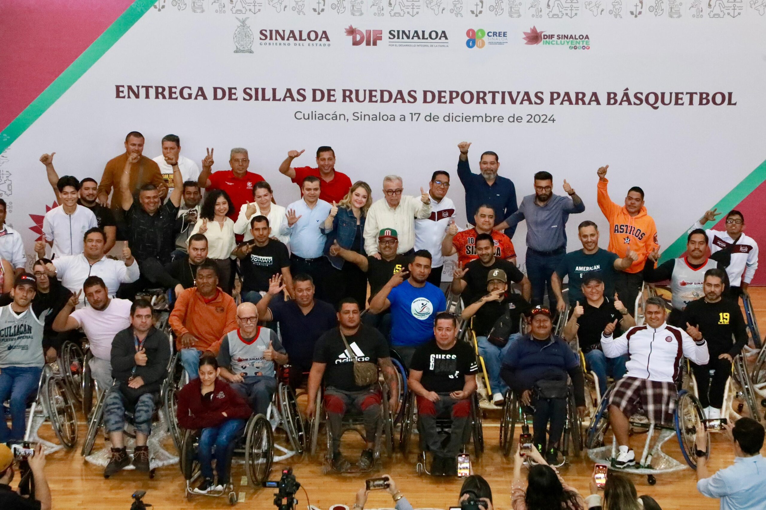 Culiacán, Sinaloa.- En una entrega histórica y sin precedente en todo el país, el gobernador Rubén Rocha Moya, junto con la presidenta del Sistema DIF Sinaloa, Eneyda Rocha Ruiz, hizo entrega de un total de 63 sillas de ruedas para el deporte adaptado de básquetbol, convirtiéndose Sinaloa en el único estado de México que ha realizado una entrega masiva en tal cantidad de estas sillas especiales.