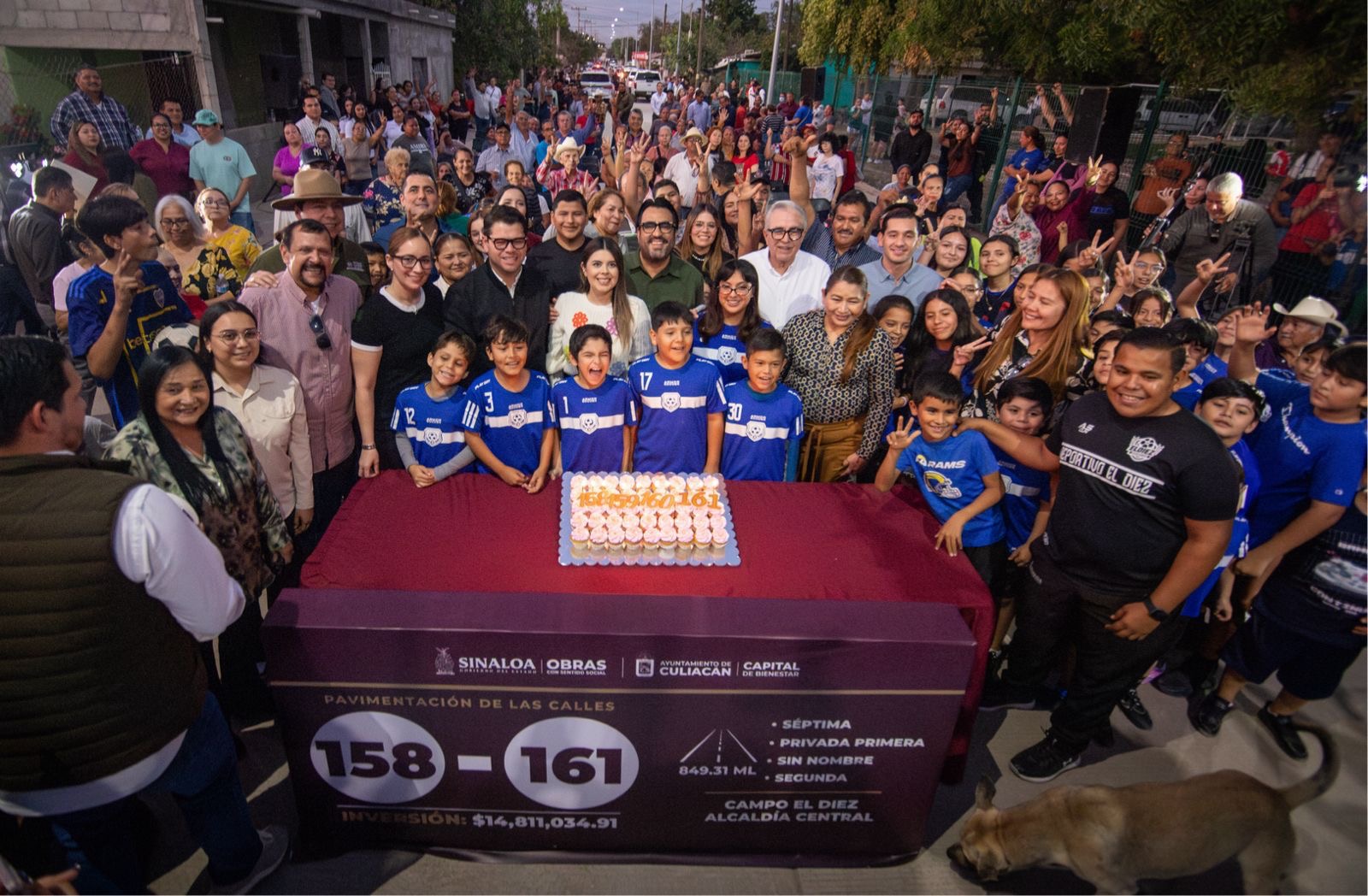 Culiacán, Sinaloa; a 20 de enero de 2026.- Al entregar junto con el gobernador Rubén Rocha Moya obras de pavimentación y una cancha deportiva en El Diez, con una inversión cercana a los 18 millones de pesos, el alcalde Juan de Dios Gámez afirmó que el pueblo debe saber qué se está haciendo para su bienestar y destacó que hoy a diferencia del pasado es justamente el pueblo el que plantear la ruta de qué hacer en cada colonia y comunidad.