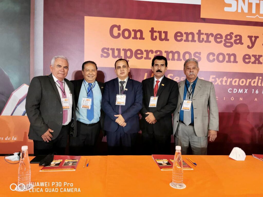 Presentes los profesores José Silvino Zavala Araujo, Secretario de Asuntos Laborales para Educación Básica del CEN del SNTE; Óscar Octavio Beltrán Ruiz, José Fernando Sandoval Angulo y Jesús Ernesto Delgado Valverde, concejales de la Sesión 53 del SNTE.
