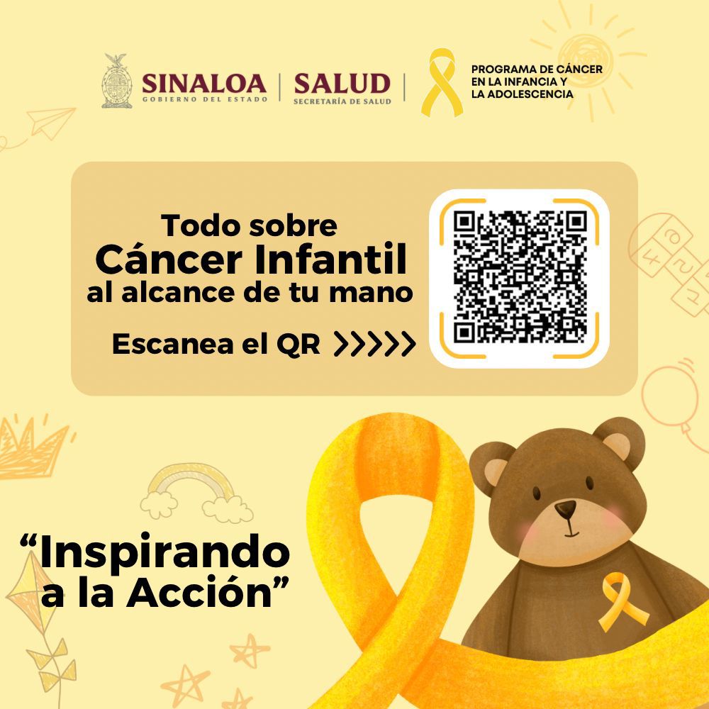 Culiacán, Sinaloa.- La prioridad del Gobierno del Estado de Sinaloa radica en la prevención de enfermedades como el Cáncer Infantil y Adolescente, en este sentido, la Secretaría de Salud facilita un código QR donde los padres de familia tienen acceso a un cuestionario relacionado a estos padecimientos lo que permitirá detectarlos oportunamente.