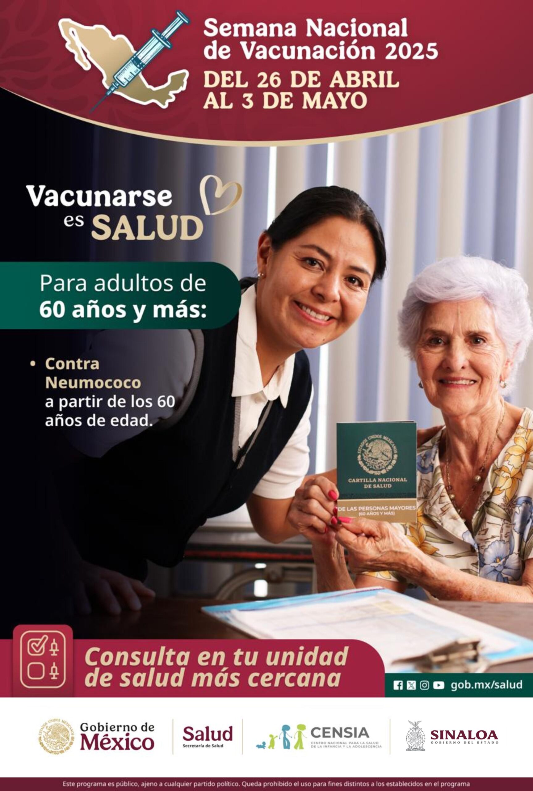 “La primera Semana Nacional de Vacunación del 2025 se va a desarrollar a nivel nacional del sábado 26 de abril al 3 de mayo del 2025. Con esto, en Sinaloa nos vamos a extender una semana más para poder atender y tener una mayor cobertura”, expuso.