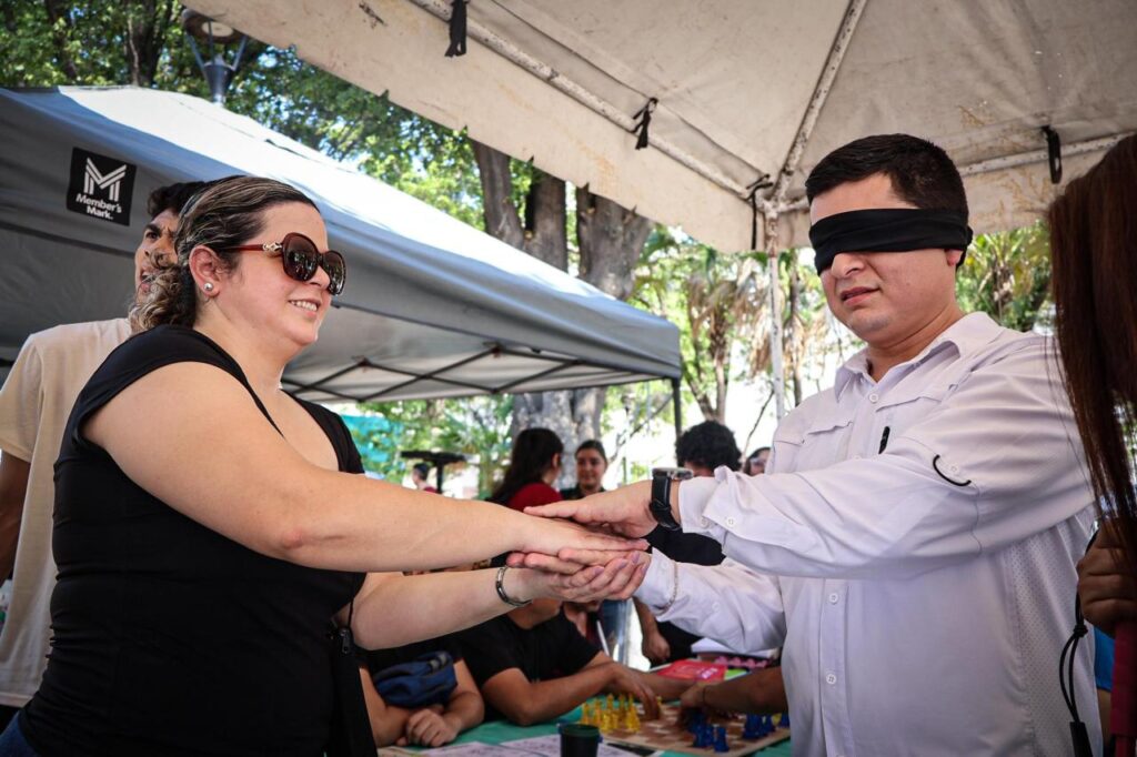 La “Caminata de la Empatía”, donde participantes vivieron una experiencia sensorial con los ojos vendados, guiados por personas con discapacidad visual y auditiva.