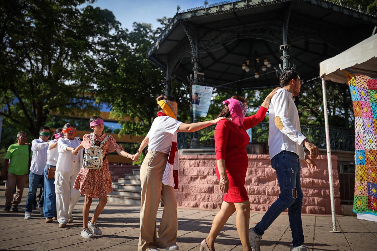 La “Caminata de la Empatía”, donde participantes vivieron una experiencia sensorial con los ojos vendados, guiados por personas con discapacidad visual y auditiva.