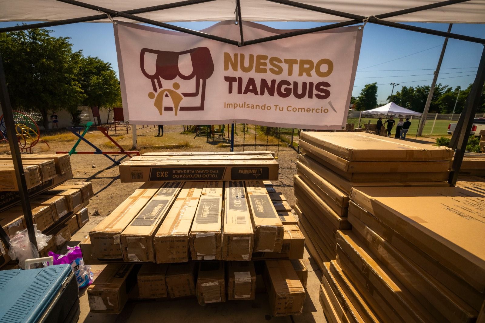 El apoyo a los tianguistas consiste en la entrega de una carpa plegable de 3×3 ó 2×2, mesa plegable de 1.8 mts y una silla plegable, mejorando sus condiciones de trabajo, todo ello con una inversión de 750 mil pesos.