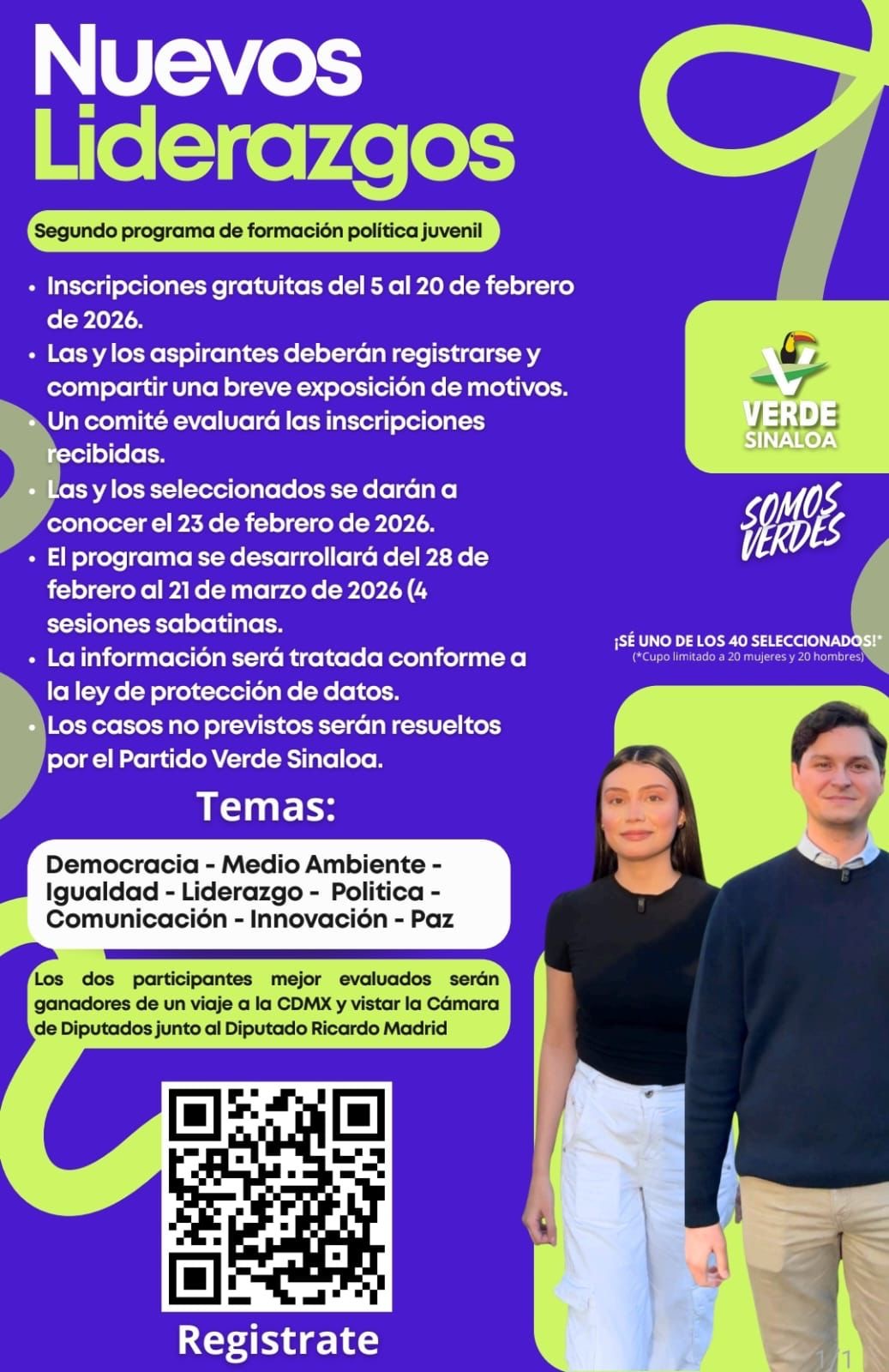El presidente del Partido Verde en Sinaloa, Ricardo Madrid Pérez, explicó que en esta ocasión se elegirán 20 jóvenes que accedan a la capacitación de alto nivel, y los dos mejores se ganarán además un viaje a CDMX a la Cámara de Diputados.